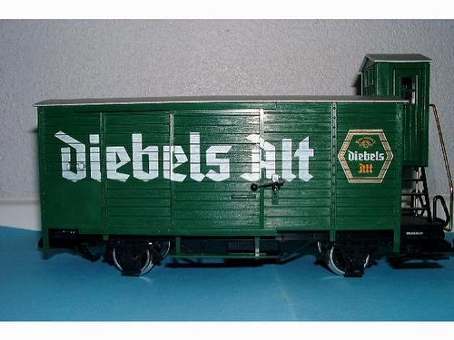 1 Gedeckter Güterwagen mit Bremserhaus,neu, hat nur in der Vitrine gestanden, innen eine Bierbüchse, umgerüstet auf Edelstahlachsen.
